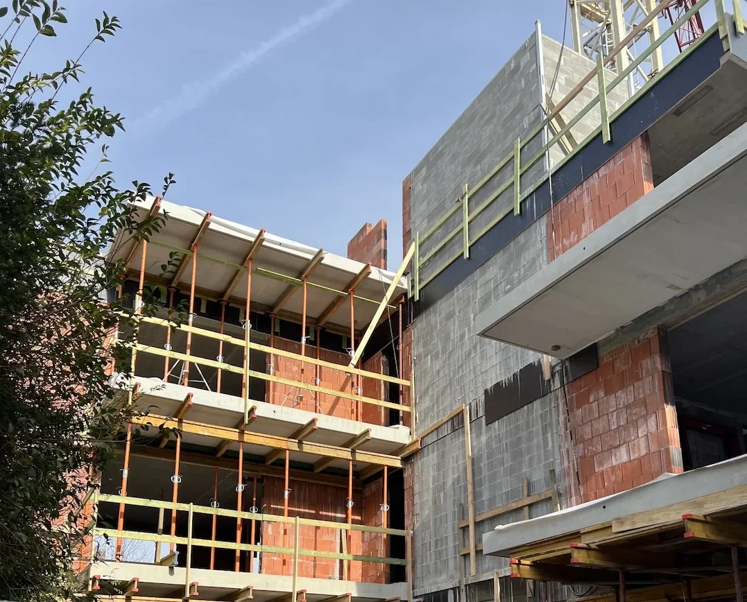 The construction included two levels of underground car parks located in direct contact with existing buildings, which required rigorous control of the excavation phases due to the considerable depth of the excavation. The work was carried out in a limited space, where each stage had to be orchestrated with precision in order to preserve the stability of the neighbouring buildings.