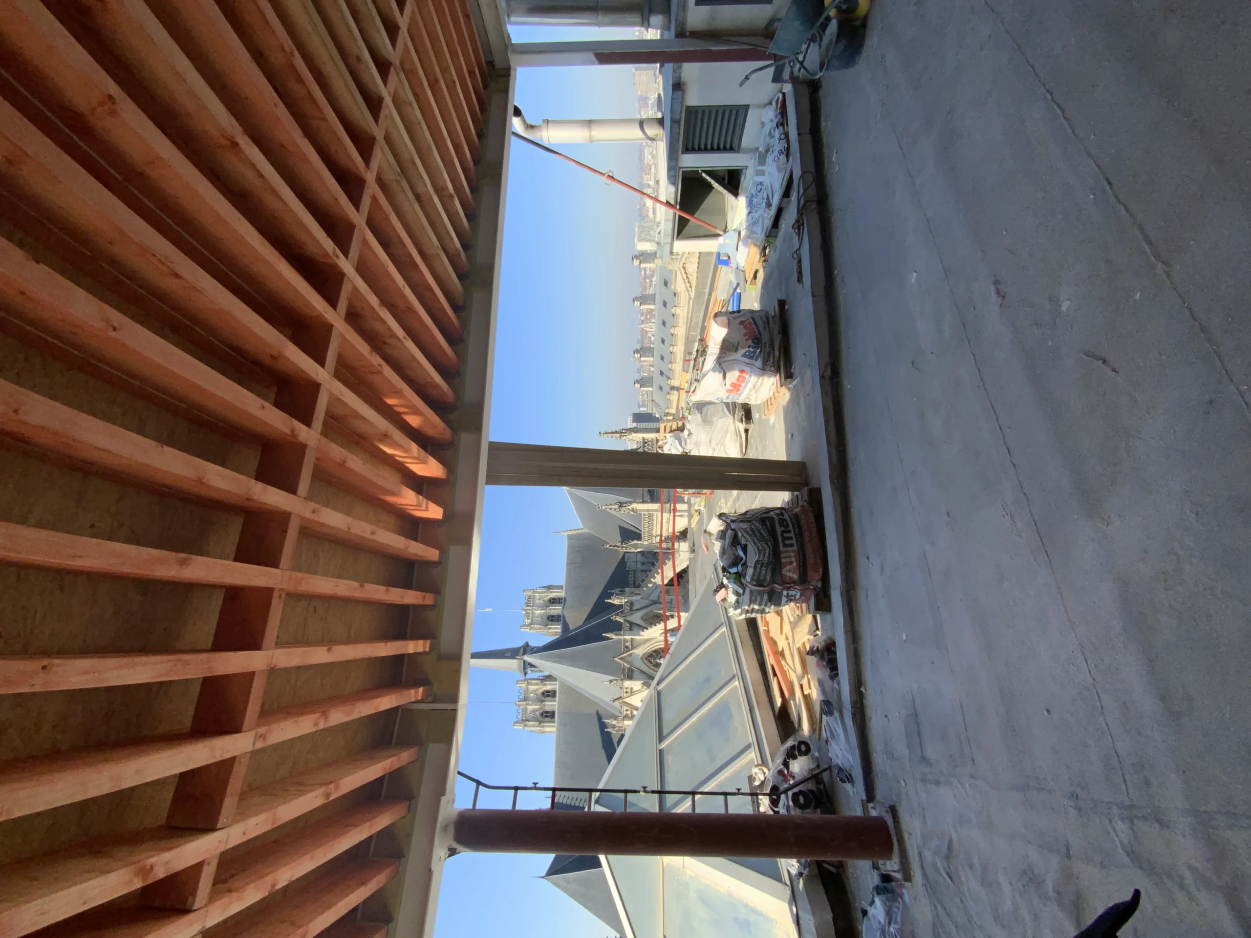 Au sommet, la terrasse offre une respiration panoramique sur Bruxelles. De la pierre à la charpente, chaque élément a été pensé pour que solidité rime avec élégance, et que la technique se mette au service d’un lieu repensé, apaisé, tourné vers le ciel.